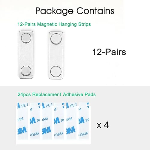 Lot de 12 paires de bandes adhésives magnétiques amovibles et sans dommages pour cadres et décorations d'intérieur