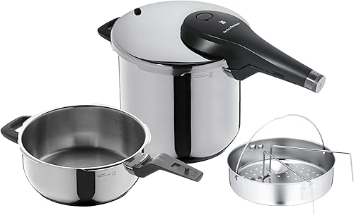 WMF Perfect Premium Lot de 3 cocottes à Induction 6,5 l + 3 l avec kit d'insertion, Acier Inoxydable Cromargan, 2 Niveaux de Cuisson, Bouton Rotatif