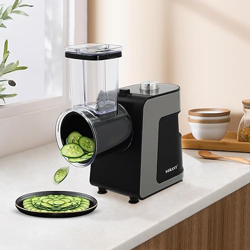 Coupe-légumes électrique 1000 W - Avec 10 lames - Râpe à légumes pour différents légumes, carottes, concombres
