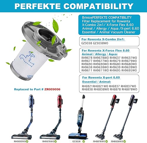 3 Pièces Filtre de Rechange pour Aspirateur Rowenta X-Force Flex 8.60 RH9611 RH9637 RH9638 RH9639, Alternative au Filtre de Séparateur Remplacer Accessoires ZR009006 avec une Brosse de Nettoyage