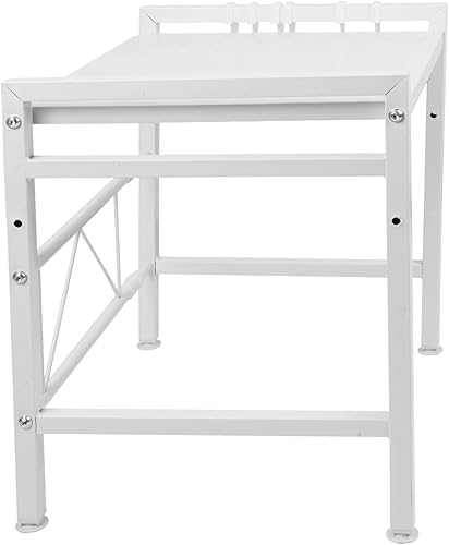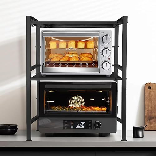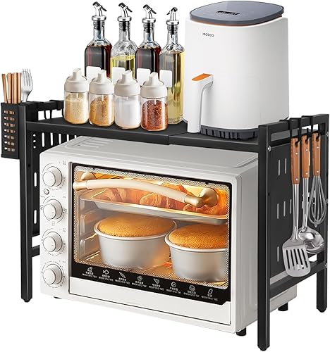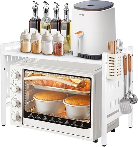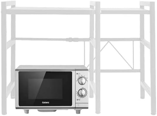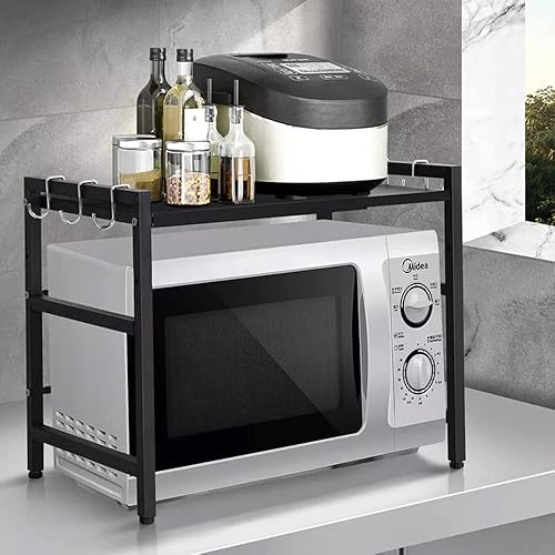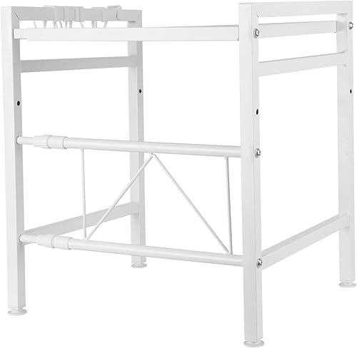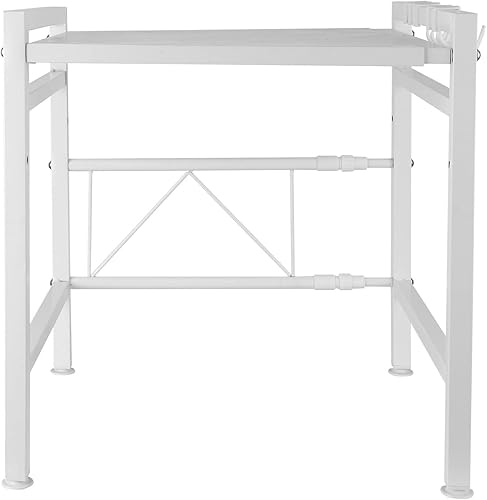 Étagère pour micro-ondes (2 niveaux), pieds antidérapants et caoutchoutés, extensible, 40 à 64 cm, avec 6 crochets (2 étages, blanche, 40-64 x 36,5 x 45 cm)