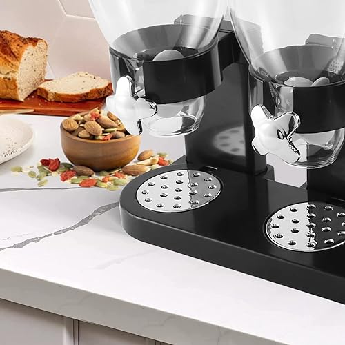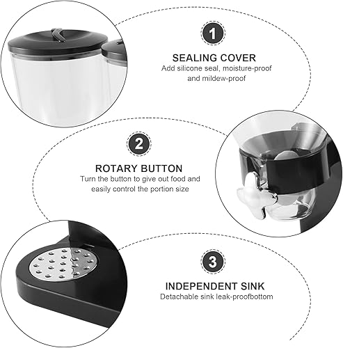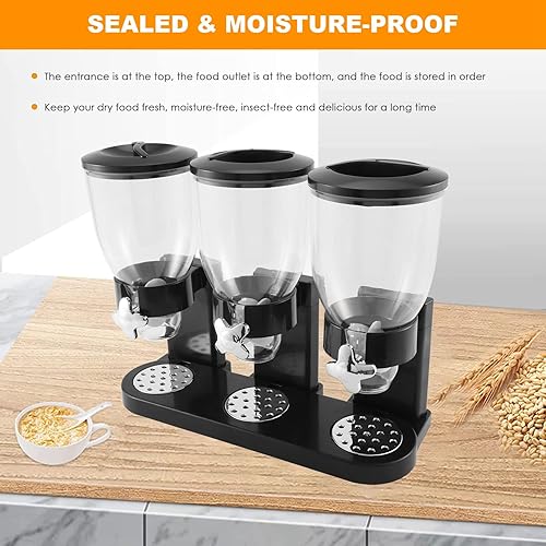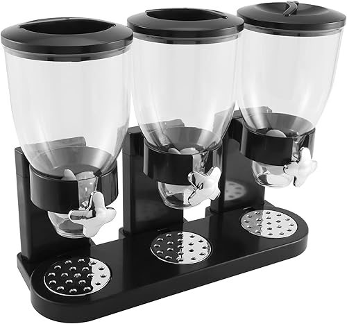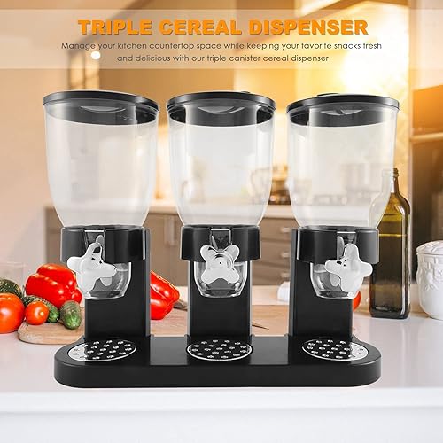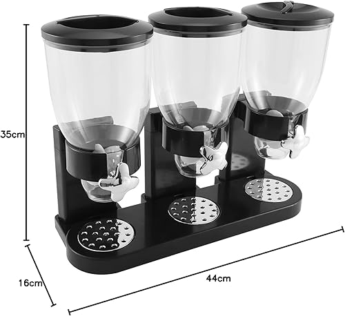 Micvtve Distributeur de nourriture sèche triple conteneur pour aliments secs en plastique récipient pour aliments noirs Modern et élégant 44 x 16 x 35 cm