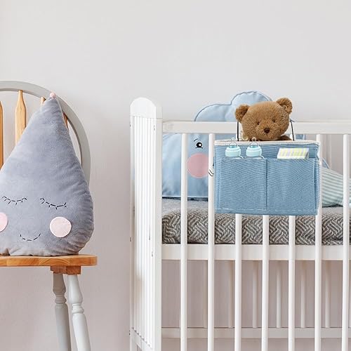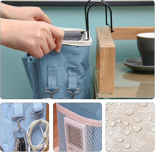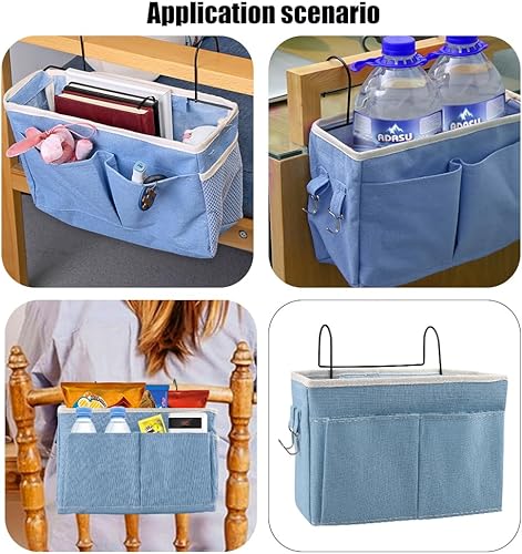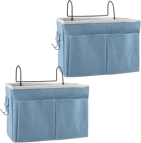 Atliberswo 2 Pièces Organisateur de lit Suspendu, Chevet de lit, pour Ranger des Magazines, des Jouets, Un téléphone, des écouteurs (30 x 18,5 x 11 cm, Bleu)
