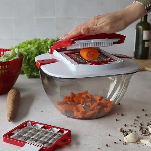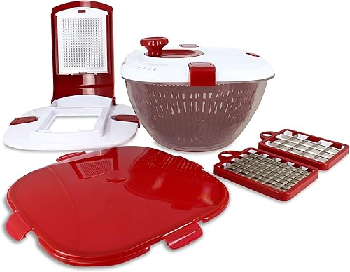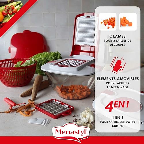 MENASTYL - ESSOREUSE A SALADE 4 EN 1 ALIX - 5040170 - Essoreuse lames interchangeables multifonctions coupe-légumes, saladier et boîte de conservation