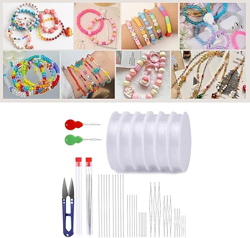 Lot de 6 rouleaux de cordon élastique pour bracelets - Fil de perles transparent de 1 mm pour bracelets - 33 x matériau extensible - Pour bricolage et bricolage