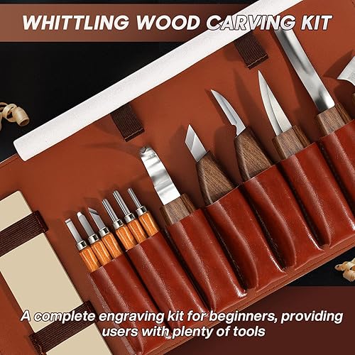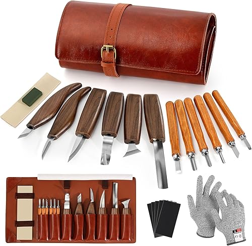 Kit Sculpture Bois 17 en 1, Ciseaux à Bois, Outils de Sculpture bois,Outillage Bois avec 12 Couteau Sculpture bois, Junior Outil de Ciseaux a Bois Kit DIY avec Gants anti-coupure,Pierres à Aiguiller