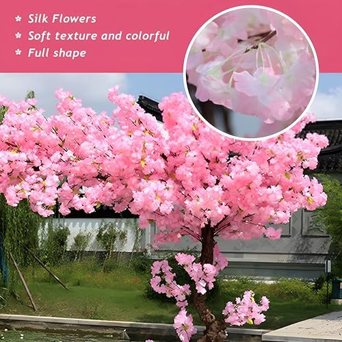 Arbre Plante Artificielle Grande Arbre De Fleurs De Cerisier Rose Artificiel Japonais, Rose Faux Sakura Fleur Decor, pour Intérieur Extérieur, Mariage, Bureau,002,2.5x2.2m