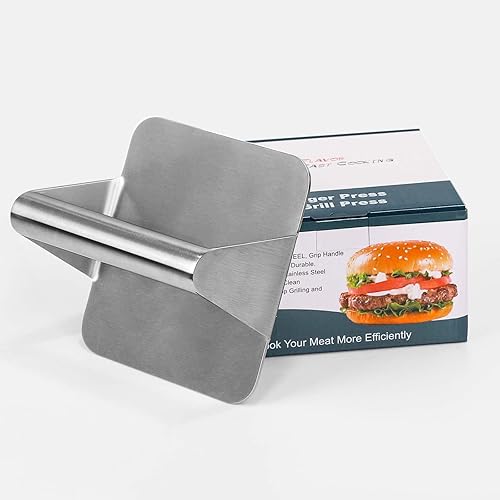 Presse à Hamburger en Acier Inoxydable 304, Presse à Viande Carrée de 5,5 Pouces, Presse-gril, Idéal pour Barbecue, Pique-nique, Maison, Facile à Nettoyer (14 * 14cm)