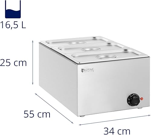 Royal Catering RCBM_GN1/3_1 Bain-marie professionnel 640 W 3 x GN 1/3 Bain-marie inox