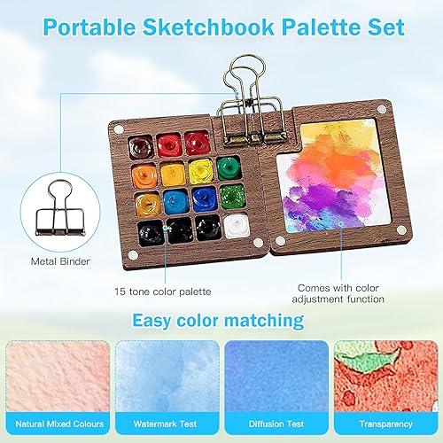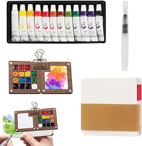 Hengrongshen Lot de 24 tubes d'aquarelle de 6 ml - Kit aquarelle de poche - Carnet de croquis - Palette pour peinture acrylique, aquarelle, huile, gouache