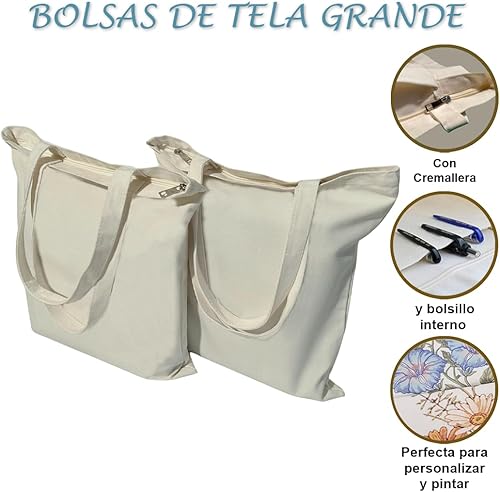 Sacs en tissu avec fermeture éclair et poche. Pratiques et polyvalents. Idéal pour le shopping, l'université, le travail et la peinture. Grand sac fourre-tout réutilisable pour femme. Sac en toile