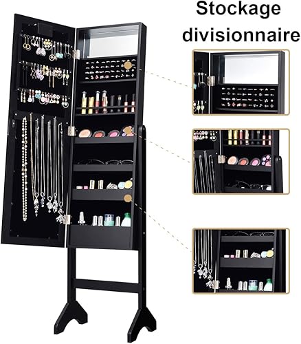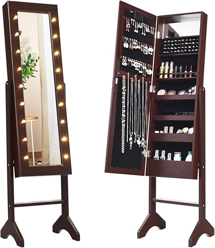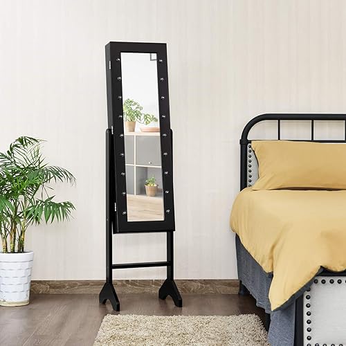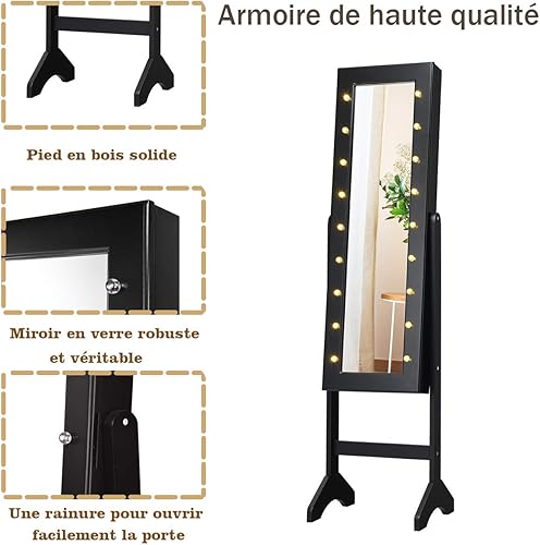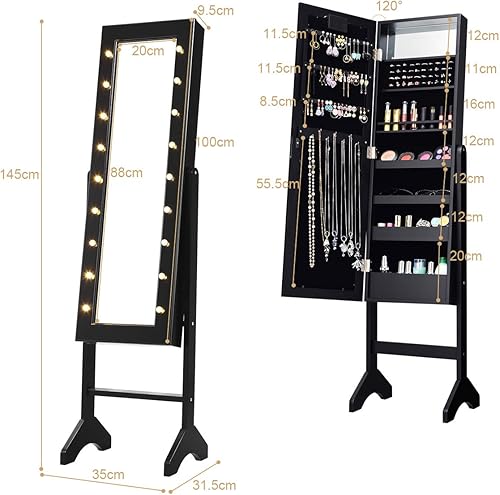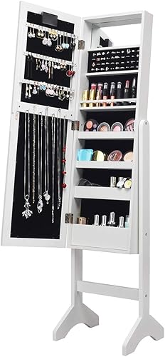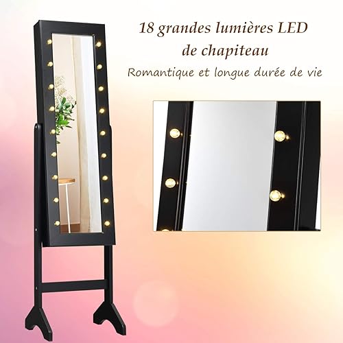COSTWAY Armoire à Bijoux sur Pied avec 18 LED, Angle Réglable,Doublure en Velours Doux 35 × 31,5 x 145 CM (Blanc)