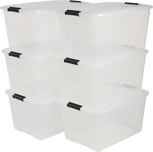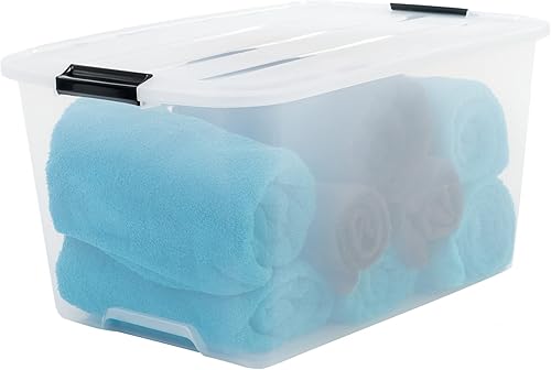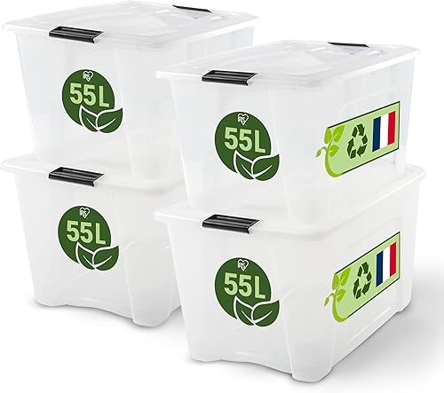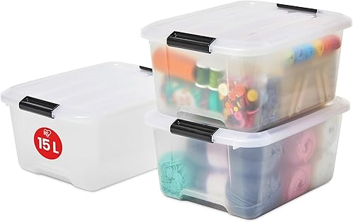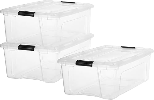 Iris Ohyama, Boite Rangement Plastique avec Couvercle, 32L, Lot de 3, Transparent, 98% en Plastique Recyclé, Clips de Fermeture, Poignée, Empilable, pour Chambre, Dressing, Bureau, Sans BPA, BSB-32