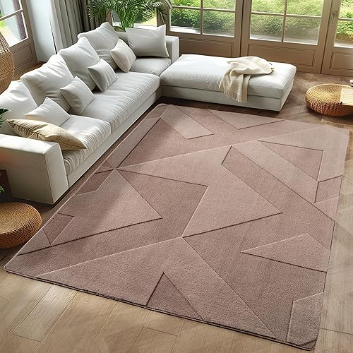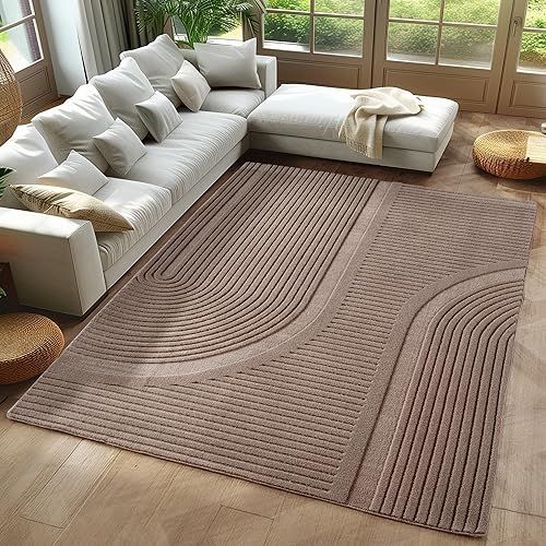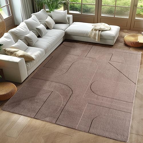 Tapis Salon Décoration intérieure,Brown,140 x 140 cm,Marron Design Géométrique Moderne