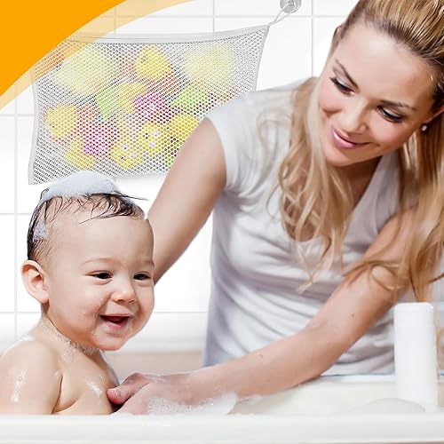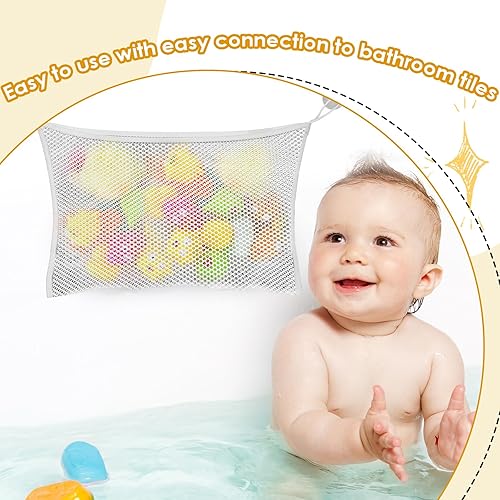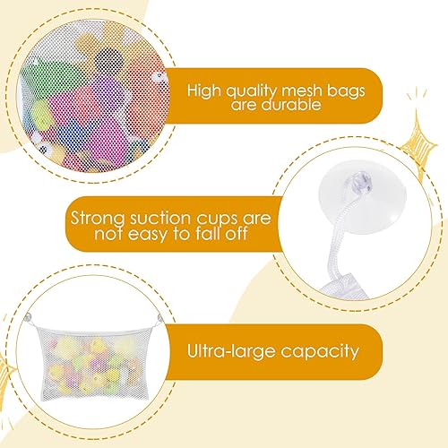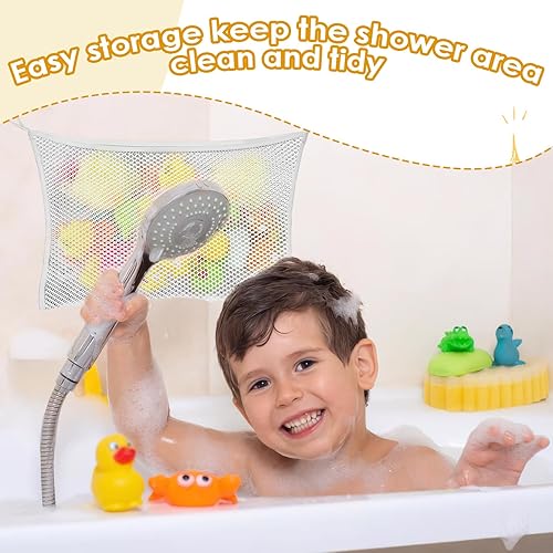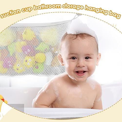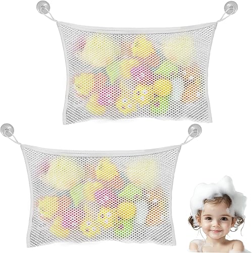 Lot de 2 grands filets de rangement pour jouets de bain, filet de rangement en maille avec ventouses puissantes, filet de rangement pliable pour jouets de bain et fournitures de salle de bain