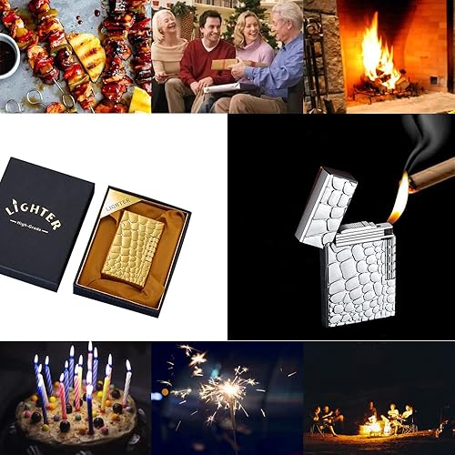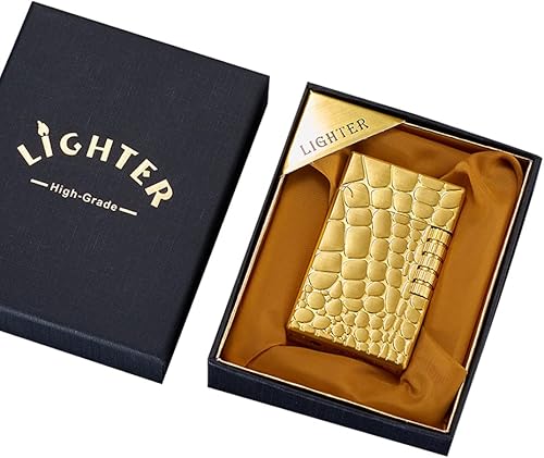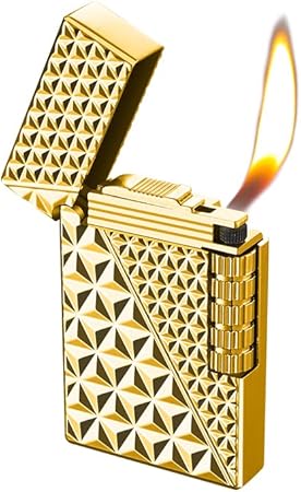 Briquets Briquet à Flamme Douce en métal Briquet à Cigare Traditionnel au Butane avec Cadran de Flamme Ajustable Allumage Vertical Roue à Silex Briquet à Dessin Classique (l'or-1)