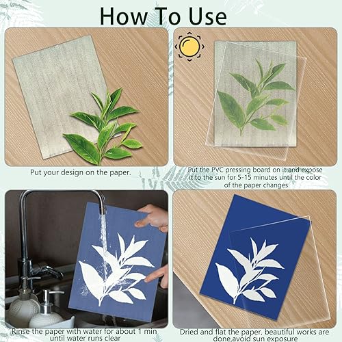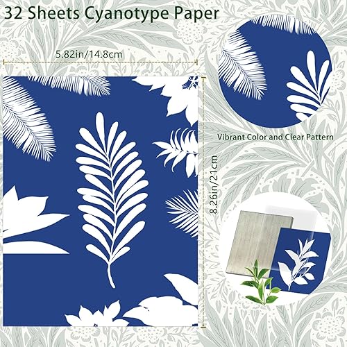 Kit de 32 Cyanotype kit,A5 papier cyanotype, papier à dessin solaire avec panneau en PVC,papier sensible au soleil pour enfants et adultes, projets d'artisanat d'art de bricolage