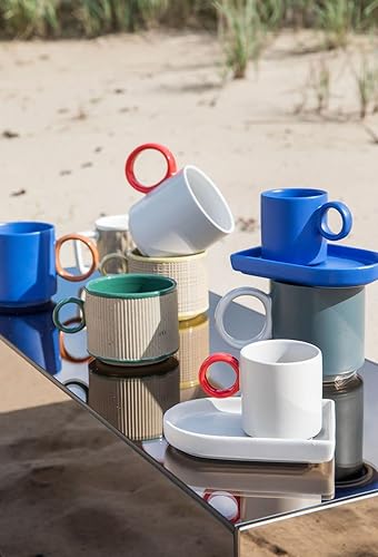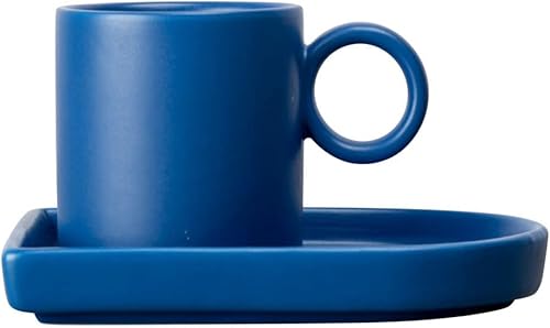 BY ON Niki Tasse à expresso avec soucoupe en porcelaine Bleu Tasse à expresso avec soucoupe Assiette Design scandinave Design rétro Tasse en porcelaine
