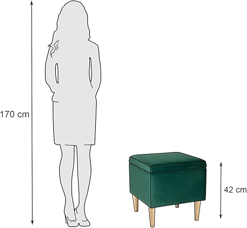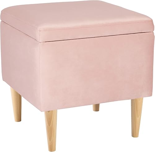 LORDLY Pouf rembourré de Rangement Johnson NAT 41x41cm - Velours Rose, Tabouret avec Couvercle, Siège, Repose-Pieds, Coffre de Stockage, Banc pour Salon, Chambre, Couloir, Chambre des Enfants