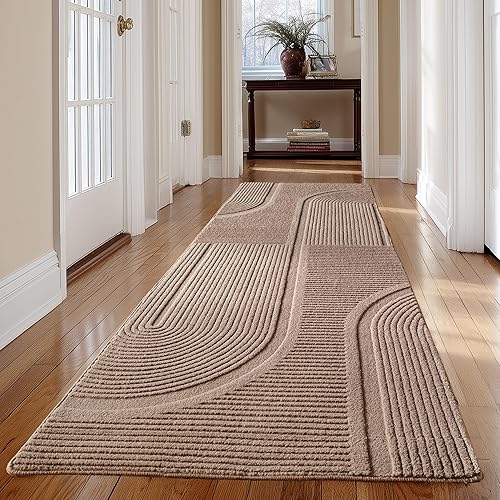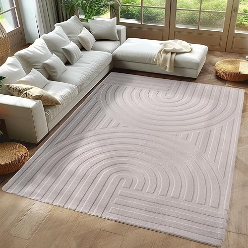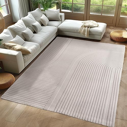 Carpetsale24 Tapis Boho scandinave uni Crème 80x150 cm, Tapis décoratif Doux et Lavable avec Effet 3D, Tapis de Passage Facile d'entretien Salon et Chambre à Coucher