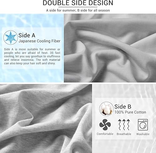 Avoalre Lot de 2 Taie Oreiller Refroidissement par Arc-Chill Fibre Froid Q-Max 0,4 Japonais, Conception Recto-Verso et Fermeture à Glissière Cachée, Taie Oreiller Douce et Respirante 40x80 Gris