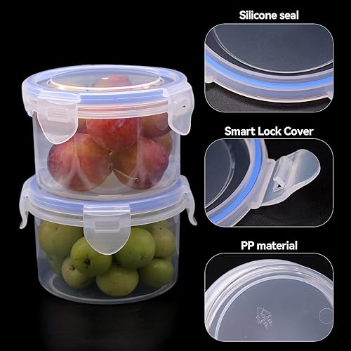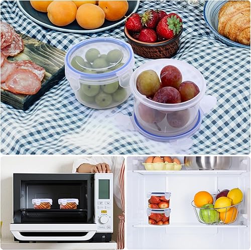 Piuluvor® Lot de 6 boîtes de conservation rondes avec couvercle, 300 ml, avec couvercle, en plastique, anti-fuite, hermétiques, empilables, pour réfrigérateur, congélateur