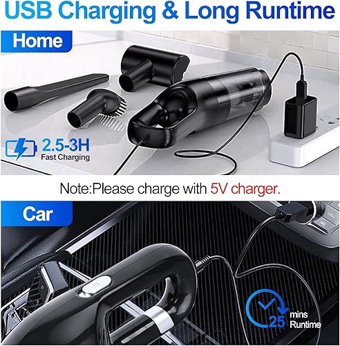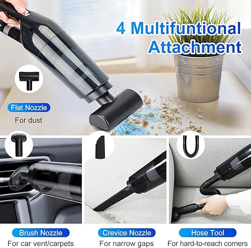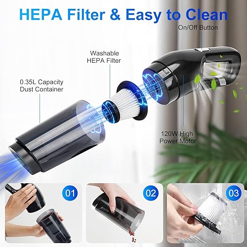 LAMA 10000 Pa Aspirateur Voiture Puissant, Mini Aspirateur à Main sans Fil Rechargeable avec Lavable Filtre HEPA, USB Aspirateur de Table pour Maison Voiture, Bureau, Cuisine, Noir