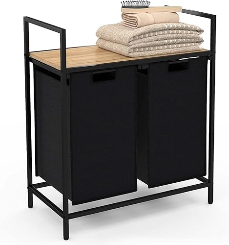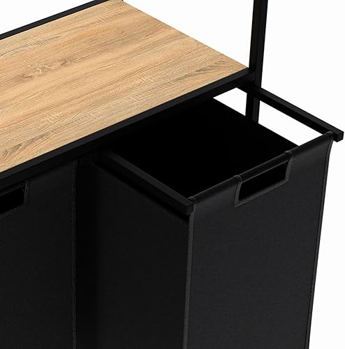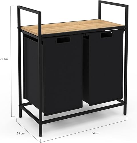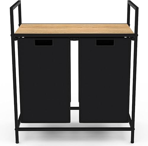IDMarket - Panier à Linge 2 bacs Detroit Tissu Noir Design Industriel