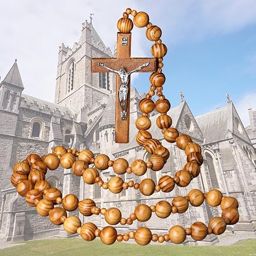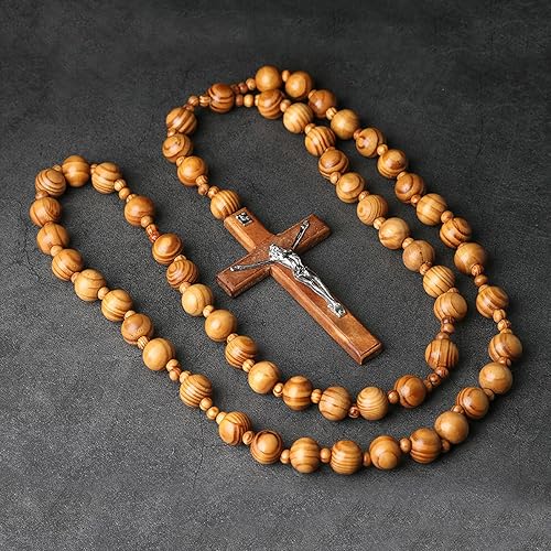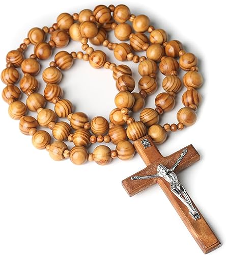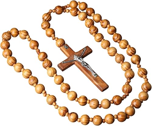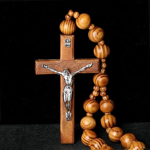 Lilinzhi Chapelet sacré extra long en bois avec perles épaisses et croix pour méditations