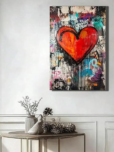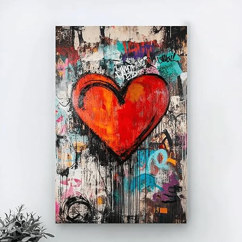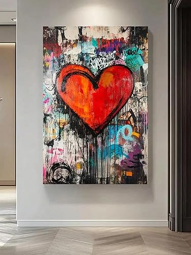 PEWFBS Toile murale colorée avec motif cœur et graffiti, grande taille, affiches et impressions XXL, pour salon, 50 x 70 cm, sans cadre