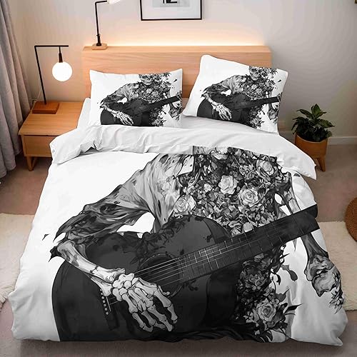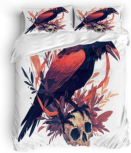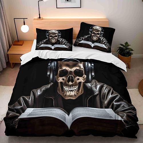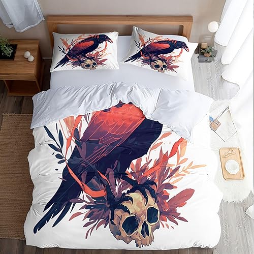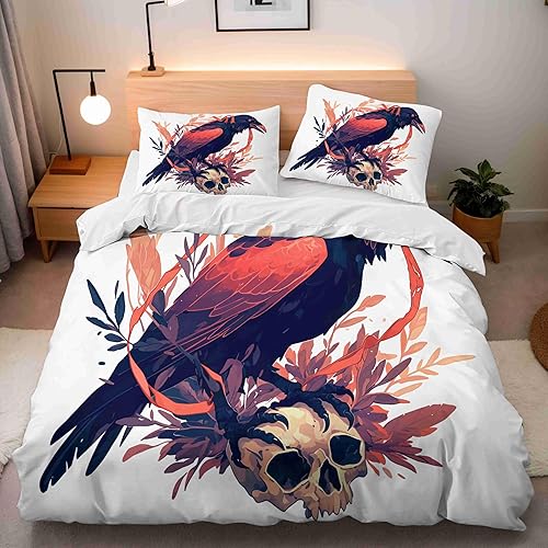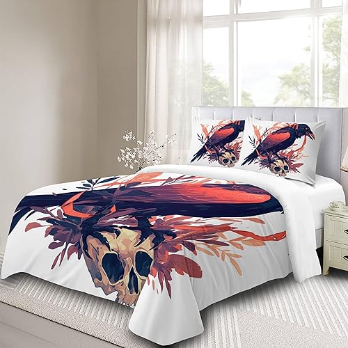 Housse de Couette 240x260 cm Crâne Coloré Parure de Lit 3 Pièces Ensembles en Microfibre Brossée avec 2 Taies d'oreiller 50x75 cm avec Fermeture Éclair