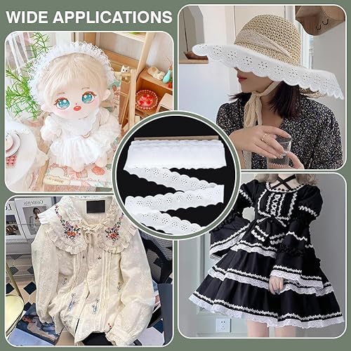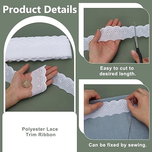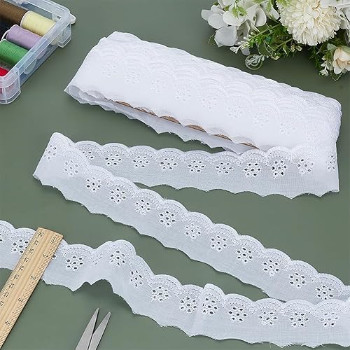 FINGERINSPIRE 14.6m Bordure en Dentelle de Coton 45mm Large Bordure en Dentelle à Œillets Blanche Broderie Fleur Ruban de Dentelle de Coton Bord Ondulé Bordure en Dentelle à Œillets pour DIY Vêtements