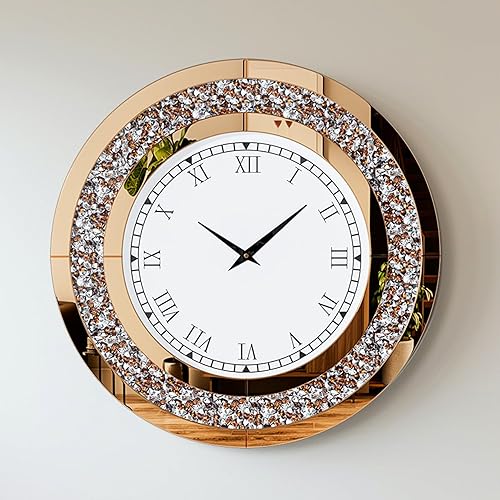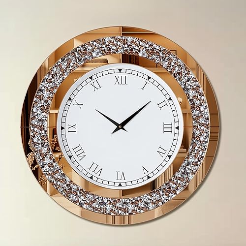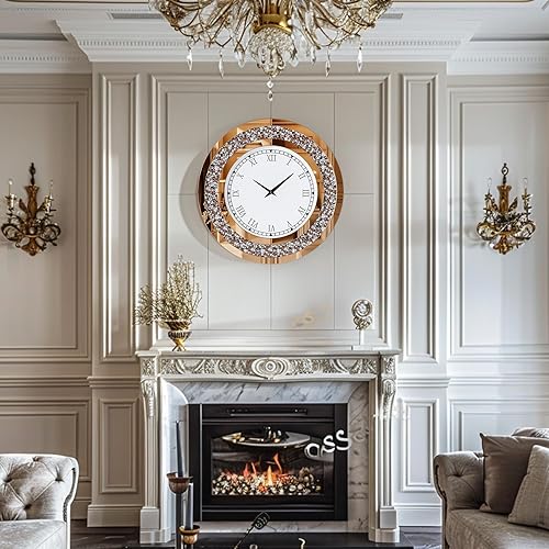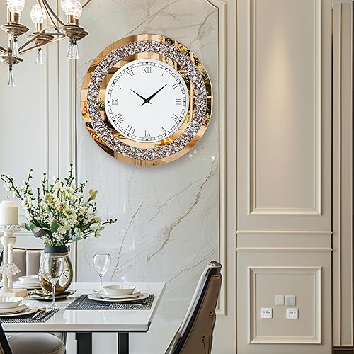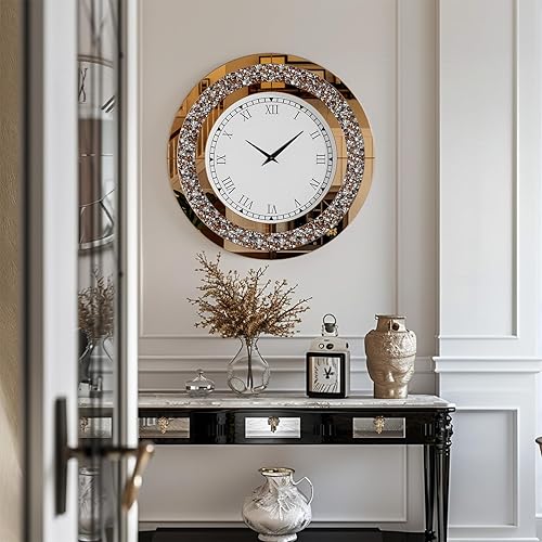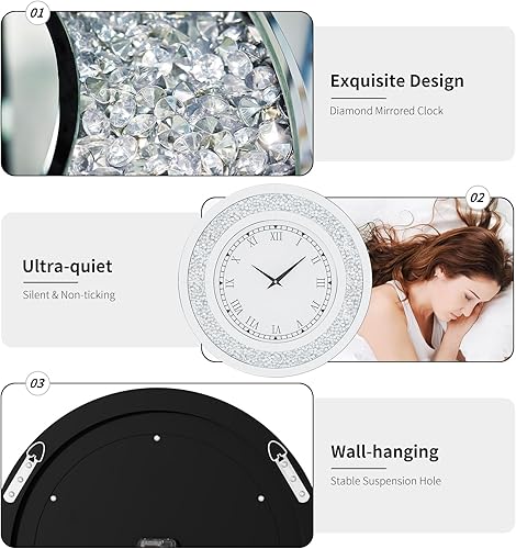 Artloge Grande Horloge Murale Silencieuse: 80cm Argent Diamand Horloge Murale Design Moderne Cristale Pendules murales Ronde en Miroir Horloge Murale Geante Décoratif Montre Murale Salon Chambre