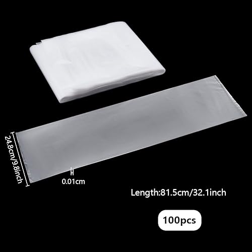PH PandaHall 15x100cm pochettes en Plastique Extra Longues 100pcs pour Sacs à Affiches Ouverts à Plat Sacs en Polyéthylène Transparents pour Affiches Sac de Rangement Étanche pour Affiches