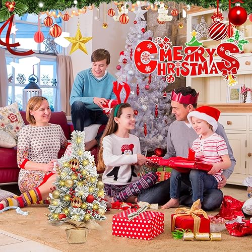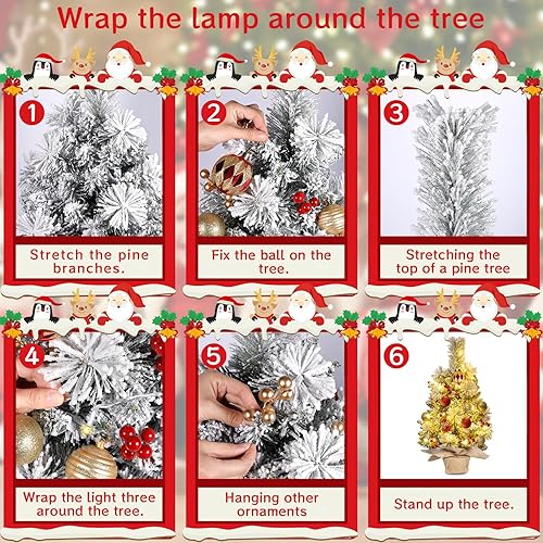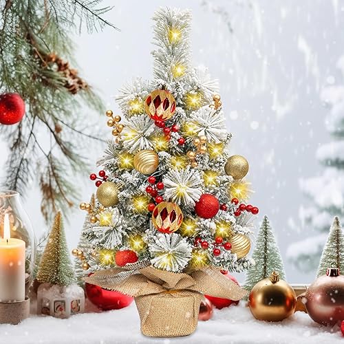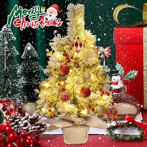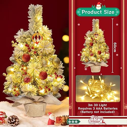 Sapins de Noël 60 cm, Mini Sapin de Noel Artificiel, Mini Sapin de Noël Artificie avec Lumineux LED et Ornements, pour la Fête De Vacances Table Bureau Accueil Décoration