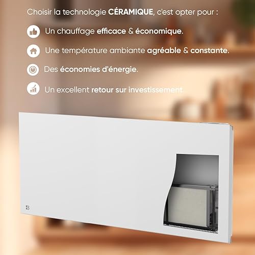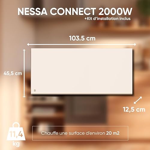 BESTHERM - Radiateur électrique fixe connecté WIFI à inertie sèche céramique 2000W Bestherm NESSA CONNECT horizontal blanc