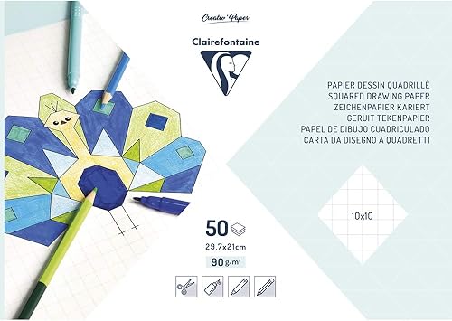 Clairefontaine 26523C - Un bloc quadrillé de 50 feuilles 29,7x21 cm 90g (une feuille d'exemples incluse)