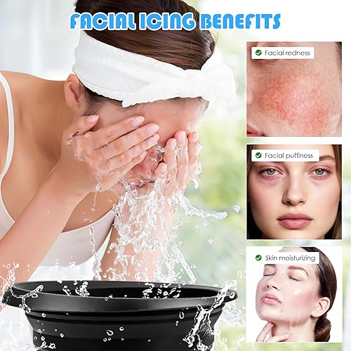 Bol de bain à glace en silicone pour visage - Pliable - Avec bac à glaçons intégré - Bol de bain de glace portable pour apaiser la peau - Réduit les gonflements et réduit les pores