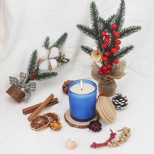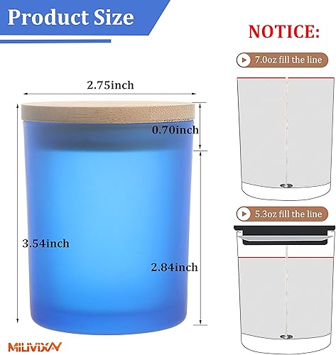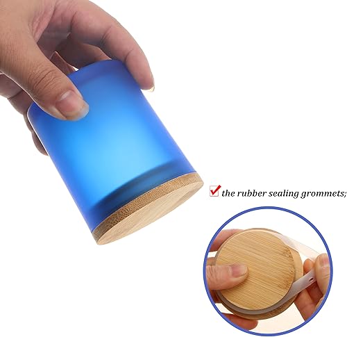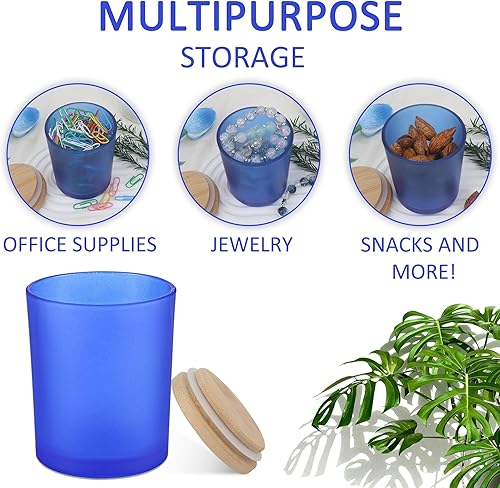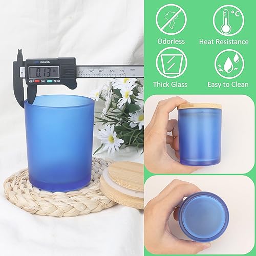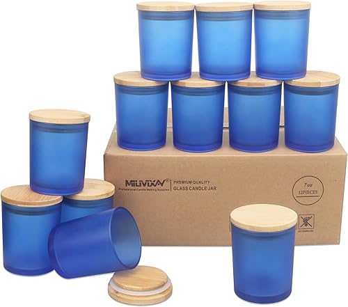MILIVIXAY Lot de 12 pots à bougies vides en verre épais bleu givré de 200 ml avec couvercles pour la fabrication de bougies – Récipients à épices, poudre