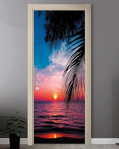 Sticker Porte Autocollant Coucher de Soleil Sur La Mer 3D Papier Peint Coucher de Soleil Poster Porte Auto-Adhésif Imperméable Décoration Mur Art Décor Mural Stickers Muraux 77x200 cm m4312