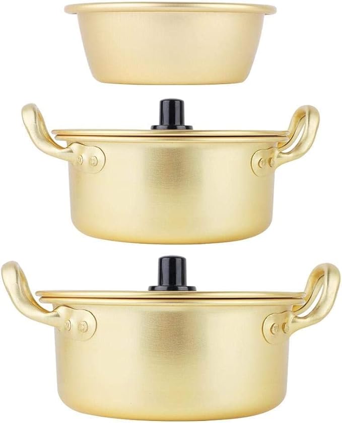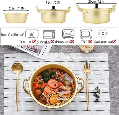 Pot de nouilles, pot de nouilles Ramen coréen, marmite de nouilles instantanées en aluminium jaune coréen pour soupe, curry, pâtes(20cm)