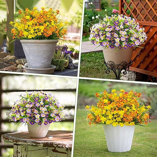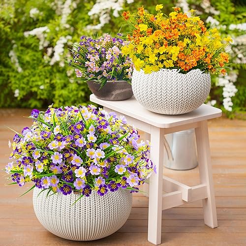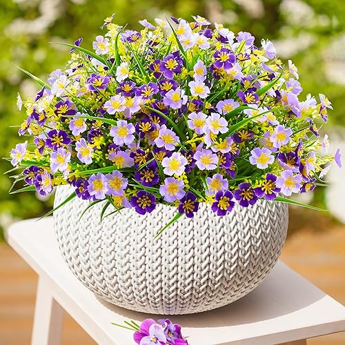 Nexum 8pcs Bouquet de Fleurs Artificielles Fleurs Cimetiere Vraies pour l'extérieur Plantes de Balcon Artificielles Résistantes Intempéries Fleurs Plastique Violet pour véranda, fenêtre