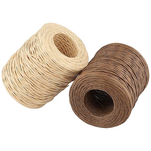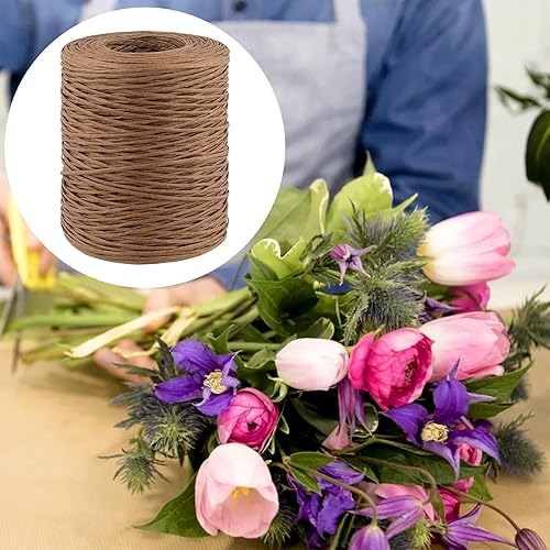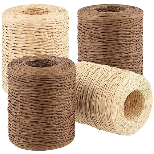 CHUENKUK Lot de 4 fils en papier naturel, 200 m, diamètre : 1 mm, fil de fer, pour bricolage, bouquet de mariage, emballage floral, marron foncé et papier kraft