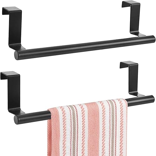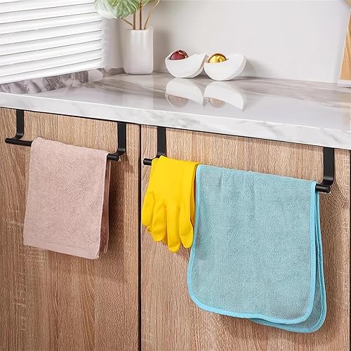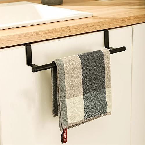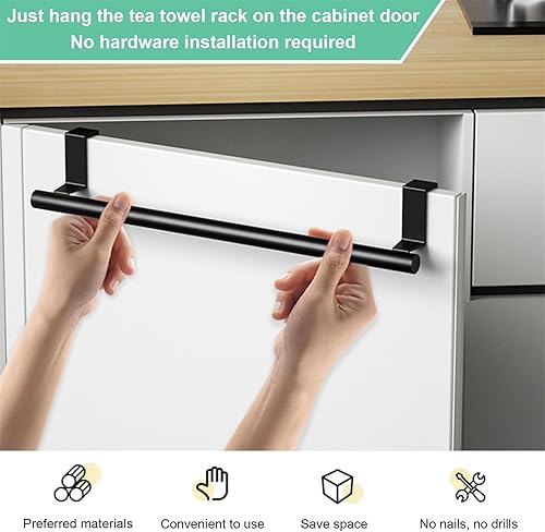 Girlove 2 Pièces Barre Porte Torchon Cuisine à Suspendre Barre Porte Serviette Cuisine sans Percage 36cm Barre Torchon en Acier Inoxydable Barre Serviette Support à Torchon pour Salle de Bain Noir