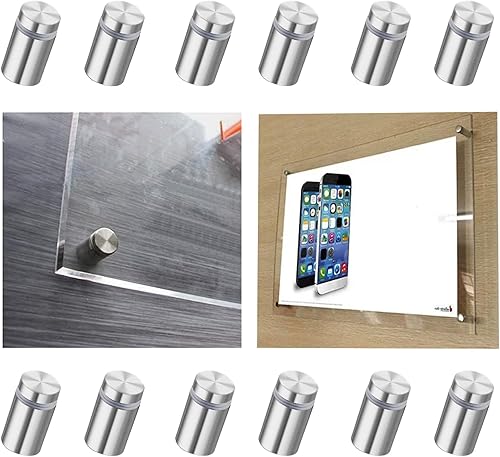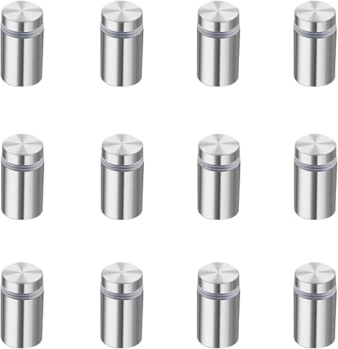 Lot de 12 vis d'espacement mural - En acier inoxydable - Pour verre, publicité, plaque (argent mat 12 x 20 mm)