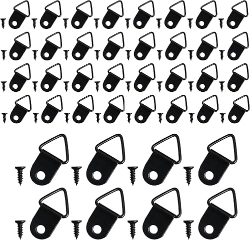 40 Pièce Crochets pour Tableau Accroche Cadre, Crochet Pour Cadre Photo, D Anneaux Crochet Tableau, Kit de Suspension de Photo, D Anneaux Metal Cadre, Avec Vis, Pour Cadres Photo, Décorations (Noir)