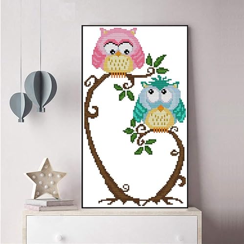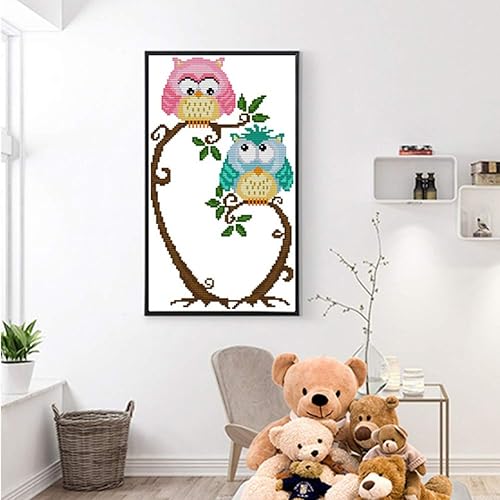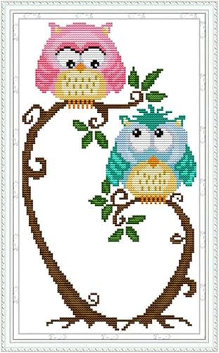 Proumhang 11 CT Kits de Broderie DIY Point de Croix Nappe à Broder 4 Brins Toile Aida Imprimé 25x42cm: Deux hiboux