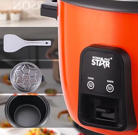 Winning Star Cuiseur de Riz Électrique, 8L, 1300W, 32 x 42 cm, Blanc (Orange)
