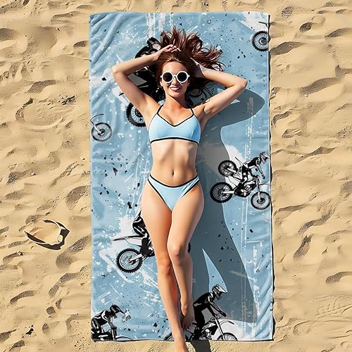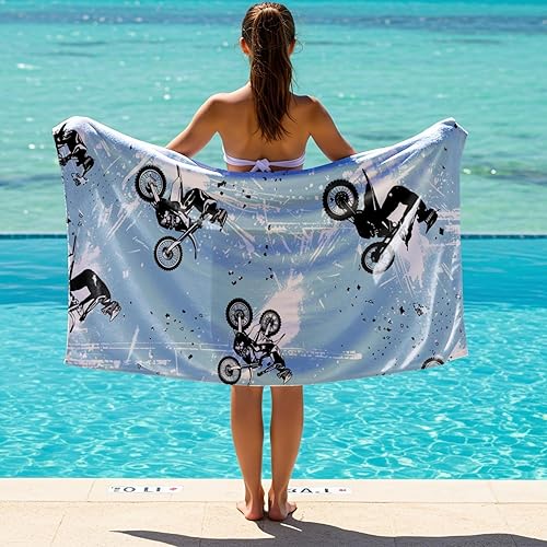 HXTHMUCL Serviette de plage en microfibre imprimée moto – Serviette de plage légère à séchage rapide pour homme et femme, serviette de bain de plage de voyage (style 1, 160 cm x 80 cm)