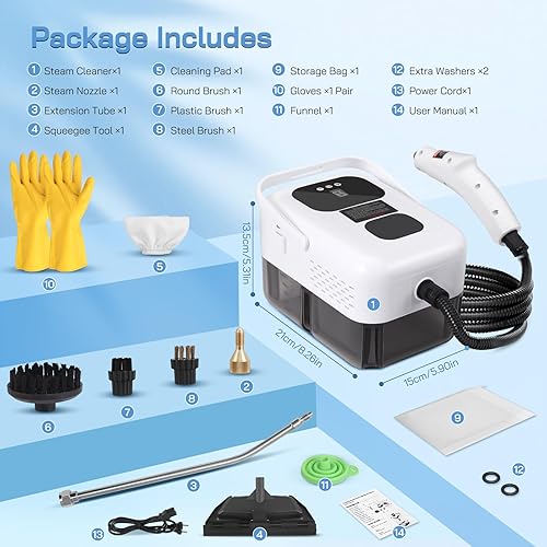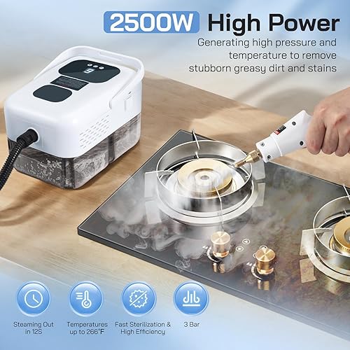 Nettoyer à Vapeur, 2500W Nettoyeur Vapeur Professionnel avec 6 Têtes 1200ML Réservoir d'eau de Grande Capacité, Nettoyage Vapeur pour le Nettoyage, Canapés, Carrelage, Voitures